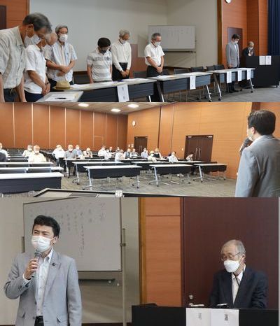 長く続いた梅雨の雨があがり,暑い中で長西支部と合併して2市2町役所職員OB・遺族656人を会員とした新しい長崎支部総会を開催しました。