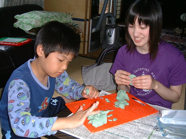 純心短大のまりちゃんと粘土をしているところ