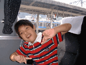 二日市まで2時間の旅です。二日市の駅にお父さんが迎えにきていました。