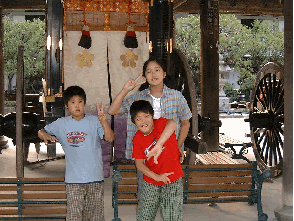 前日に時代祭りが行われたそうで、そのときに使われた牛車の前で1枚。
