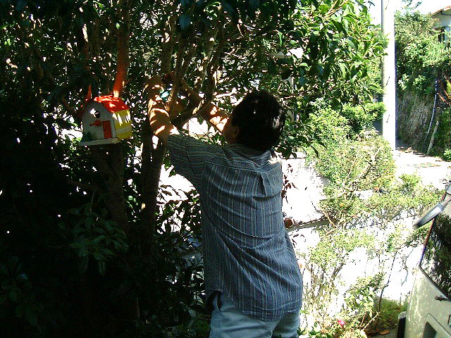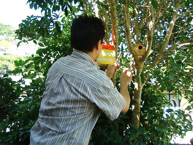 今日はお父さんは現場のお仕事はお休みの日です。 でも事務所で図面を作成しています。 お昼ご飯を食べたあと、みーちゃんとかずくんの 夏休みにつくった巣箱をキンモクセイの木につけてもらいました。 おとうさん がんばって。 お父さん 大丈夫? お姉ちゃん、小鳥さんくるといいね! そうだね!とっても楽しみ〜☆ こうしてやっと取り付けられた巣箱です。 お父さんありがとう。 小鳥が遊びにきてくれるかな? ピピピピ♪♪ かわいい鳴き声が聞こえてきそうです。 |
