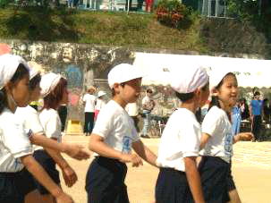 ぼくは、青組です。クラスのみんなと入場行進です。
