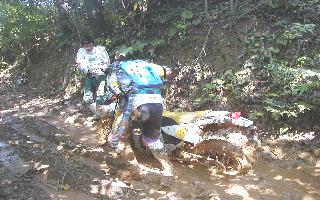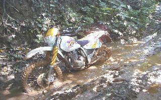 | モトクロスは、石をなくそうとする。エンデューロは石をのこそうとする。ましてや、丸太を置いていく。 |