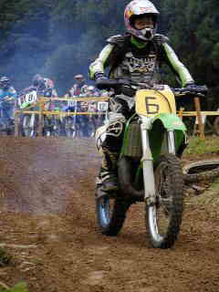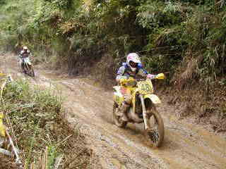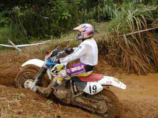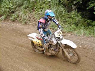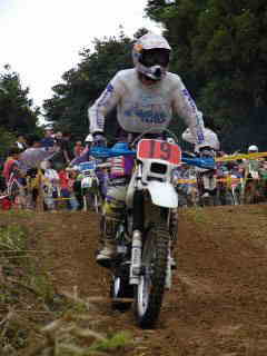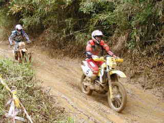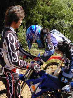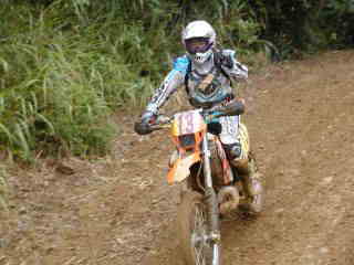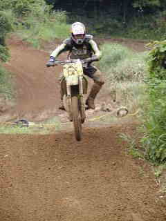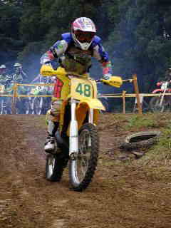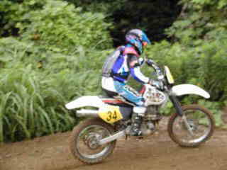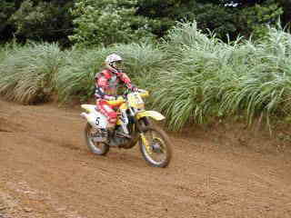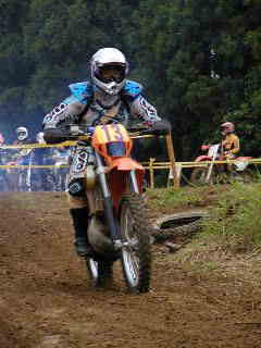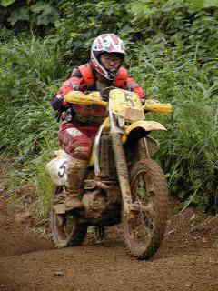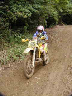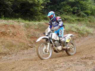 | XR400松永氏、今年40歳になりました。今回のレースでは最後の周回の時、竹やぶ道の掘れた轍にはまりスタッフが来るまで戻れなかったらしい、(現在彼は、ktm200を注文中)次回は、ktmで参加かな | |||