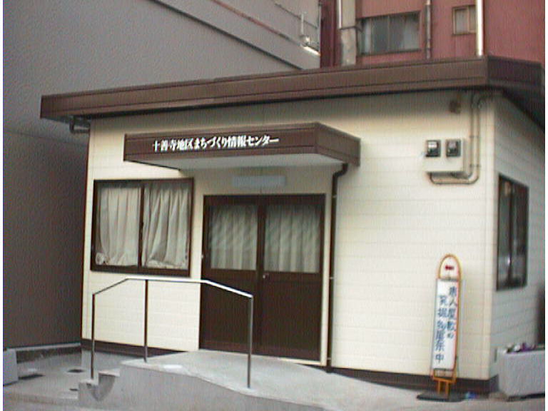 都市整備課では、斜面市街地の整備を促進するために、平成2年度より建設 省住宅局所管の事業を活用しながら調査を行っている。 特に十善寺地区(館内町・稲田町・十人町・中新町)では、平成4年度に地 元自治会、商店街の代表者との協議をもとに地区のまちづくり計画案を策定し たところである。 今後は、この計画を一つのたたき台として地元関係者の総意に基づく実施計 画として整理し、具体的な事業の展開をはかる。 センターの活用方法について: 当地区での事業立ち上げは平成7年度を目論でいるが、事業手法としては「 住環境総合整備事業」と「市街地再開発事業」を想定しており、特にこれらの 事業は地元関係者の同意が前提条件となる。 そこで、これら同意を得るために計画の周知を図る必要があるので、本セン ターを「十善寺地区まちづくり情報センター」としてとらえ、計画図・僕型・ バース等の展示あるいは地元関係者に対する説明会、勉強会の場所に活用する など事券促進のための現場都粉所的な活用を図る。