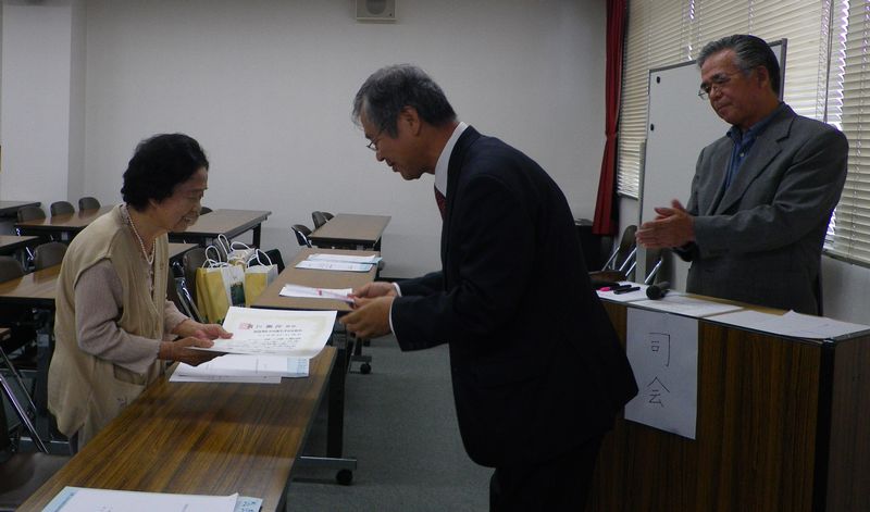 22年度逝去の先輩方へ黙祷をささげた後、米寿、傘寿の方々へ長崎県市町村職員年金者連盟からの感謝状と 祝い金を伝達した後、坂田副支部長を議長として議案を全て原案通り承認しました。