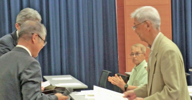 昨年13名の逝去会員への黙祷、21名の長寿会員祝贈呈(本人会員;卒寿5名、傘寿11名、米寿10名、喜寿13名、古希17名、遺族会員;卒寿2名、米寿2名、傘壽3名、古希2名)