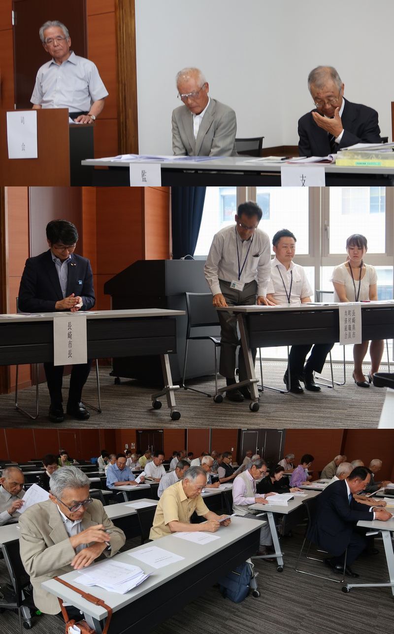 長く続いた梅雨の雨があがり,暑い中で長西支部と合併して2市2町役所職員OB・遺族656人を会員とした新しい長崎支部総会を開催しました。