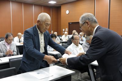 70歳からの支部独自の本人会員、遺族会員の長寿祝金は受付でお渡しし、お名前を紹介しました。