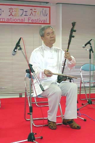 写真は「メモリー」を演奏する私、100万本のバラは全員二胡で