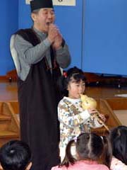 口笛(こうてき)で「かえるの歌」、ドレミ尺八で「大きな栗の木の下で」