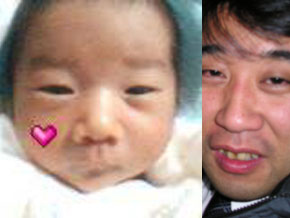 しょうかいします。皆さんから見てボクの右側でとろけそうな顔をしておりますのが、このたびめでたくパパデビューしました吉田誠市でございます。酒屋の息子なのに下戸で、3度の飯も好きですが、「すなっぷおん」と「くるま」と「おーとばい」をこよなく愛する「めかにっく」です。